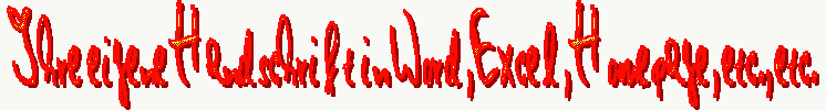 Interessant und beliebt für Einladungen, persönliche Briefe, Homepage und vieles mehr: Die eigene Handschrift im PC als TrueTypeFont. Ich erstelle Ihnen Ihre persönliche Handschrift, schnell und preiswert. Bei Interesse einfach eine schicken. Sie erhalten dann -je nach Wunsch- genauere Infos oder aber gleich ein paar Seiten zugeschickt, in die sie per Hand in die vorgegebenen Felder Buchstaben eintragen und schicken sie wieder an mich zurück. Ca. 2 Wochen später erhalten Sie dann von mir Ihre eigene Handschirft als TrueTypeFont (*.ttf) zurück. E-Mail